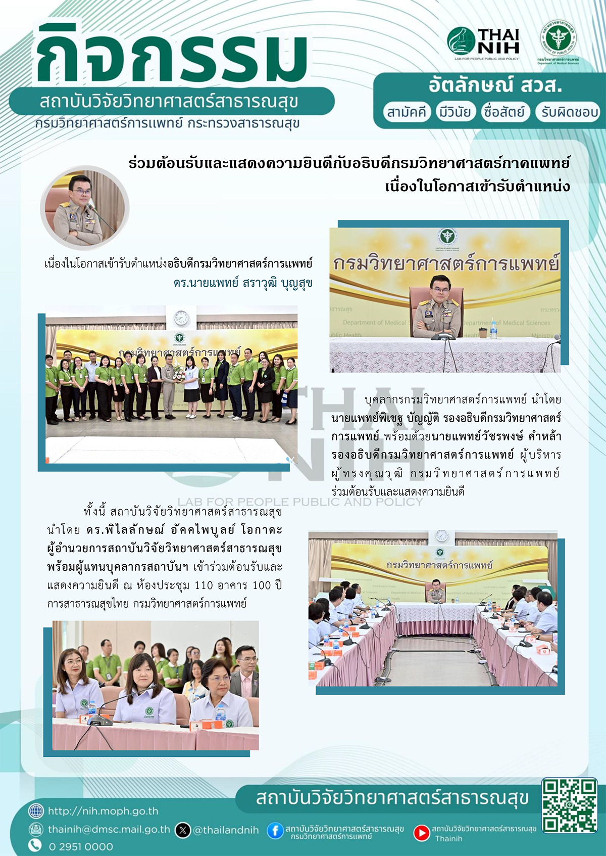 ร่วมต้อนรับและแสดงความยินดีกับอธิบดีกรมวิทยาศาสตร์กาคแพทย์ เนื่องในโอกาสเข้ารับตำแหน่ง