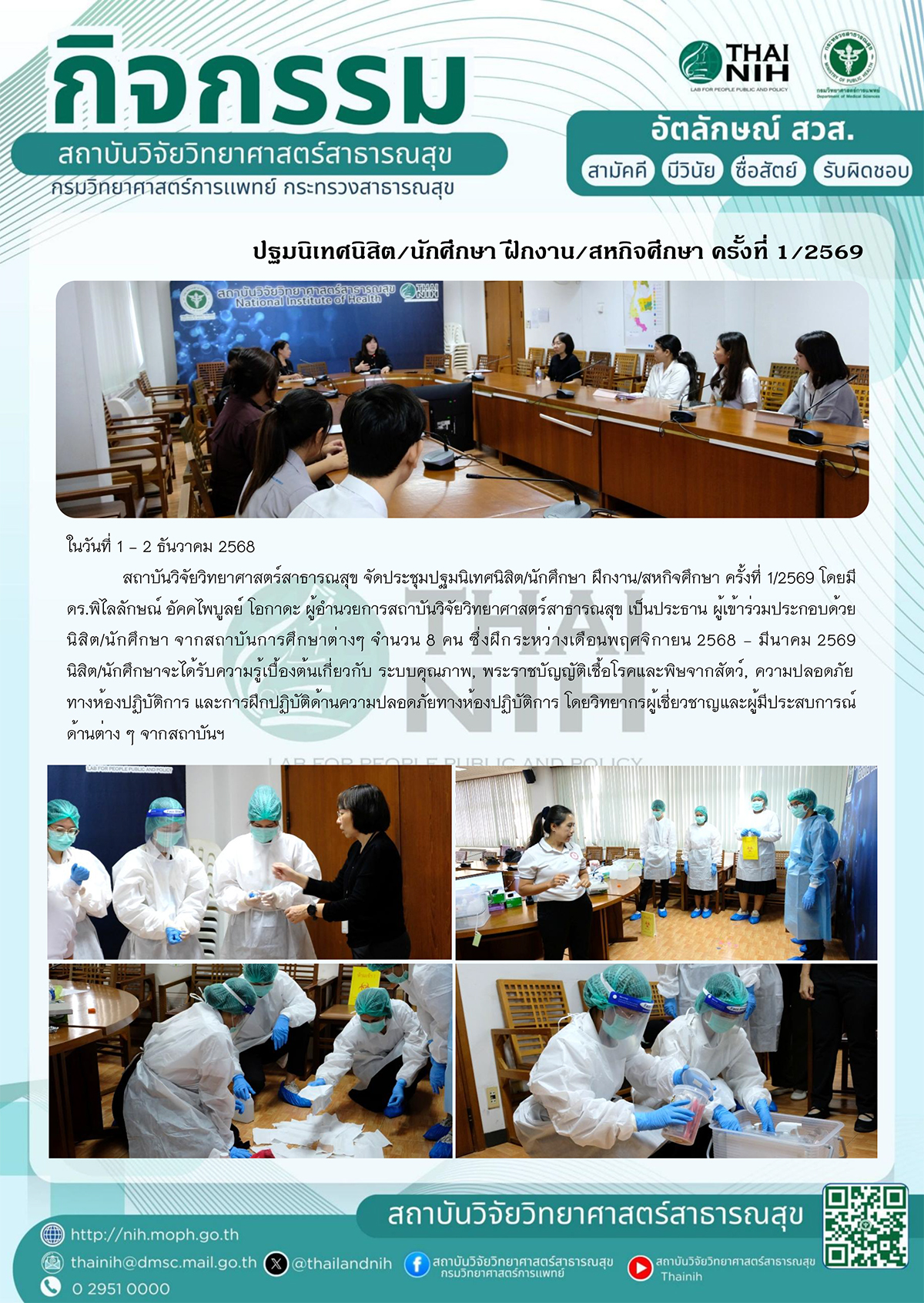 ปฐมนิเทศนิสิต/นักศึกษา ฝึกงาน/สหกิจศึกษา ครั้งที่ 1/2569