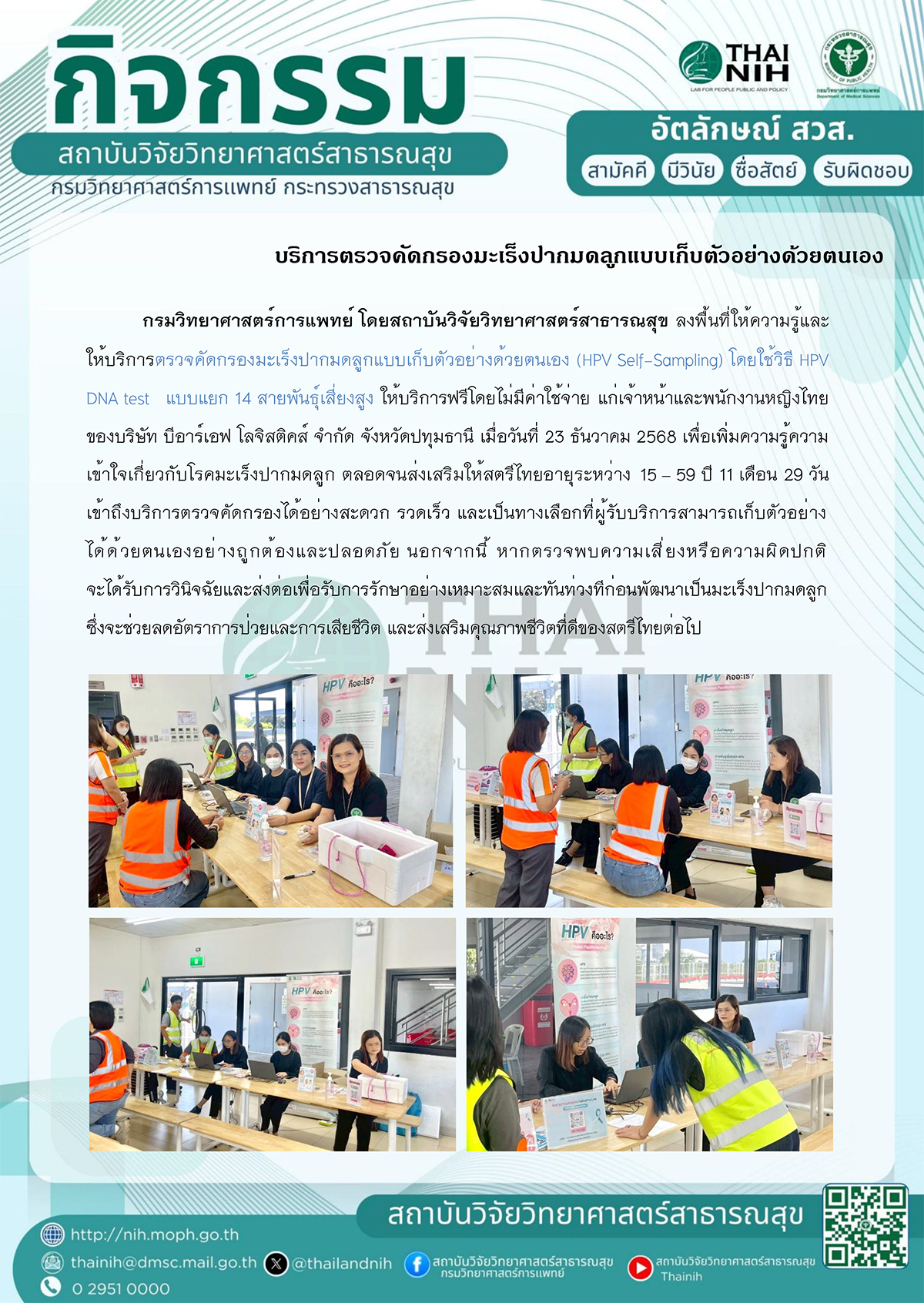 บริการตรวจคัดกรองมะเร็งปากมดลูกแบบเก็บตัวอย่างด้วยตนเอง