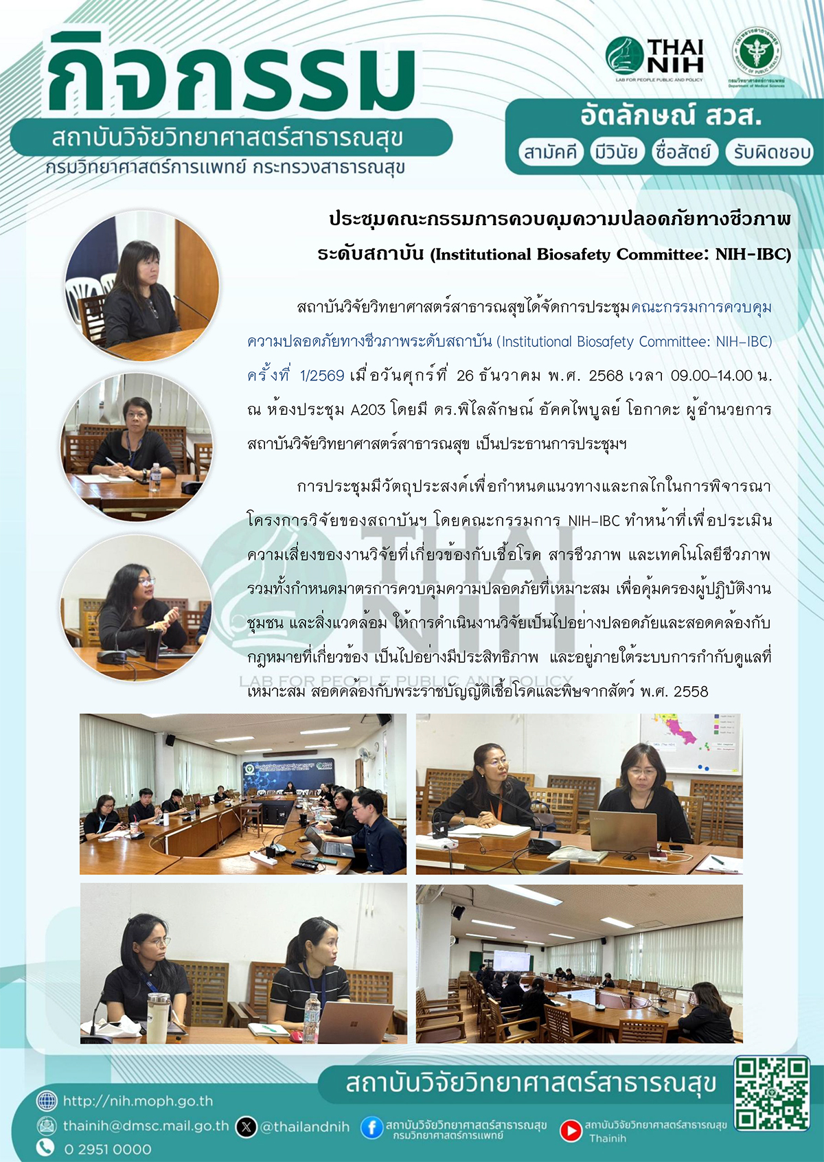 ประชุมคณะกรรมการควบคุมความปลอดภัยทางชีวภาพ ระดับสถาบัน (Institutional Biosafety Committee: NIH-IBC)