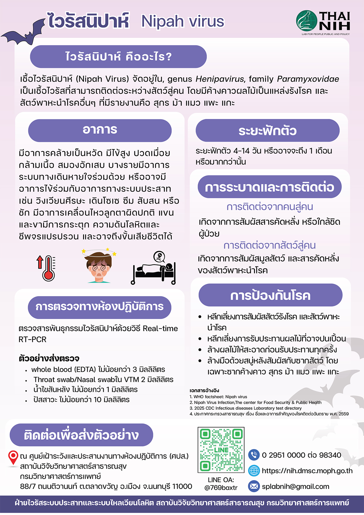 แบบส่งตัวอย่างโรคติดเชื้อไวรัสนิปาห์ (Nipah virus) สถาบันวิจัยวิทยาศาสตร์สาธารณสุข กรมวิทยาศาสตร์การแพทย์
