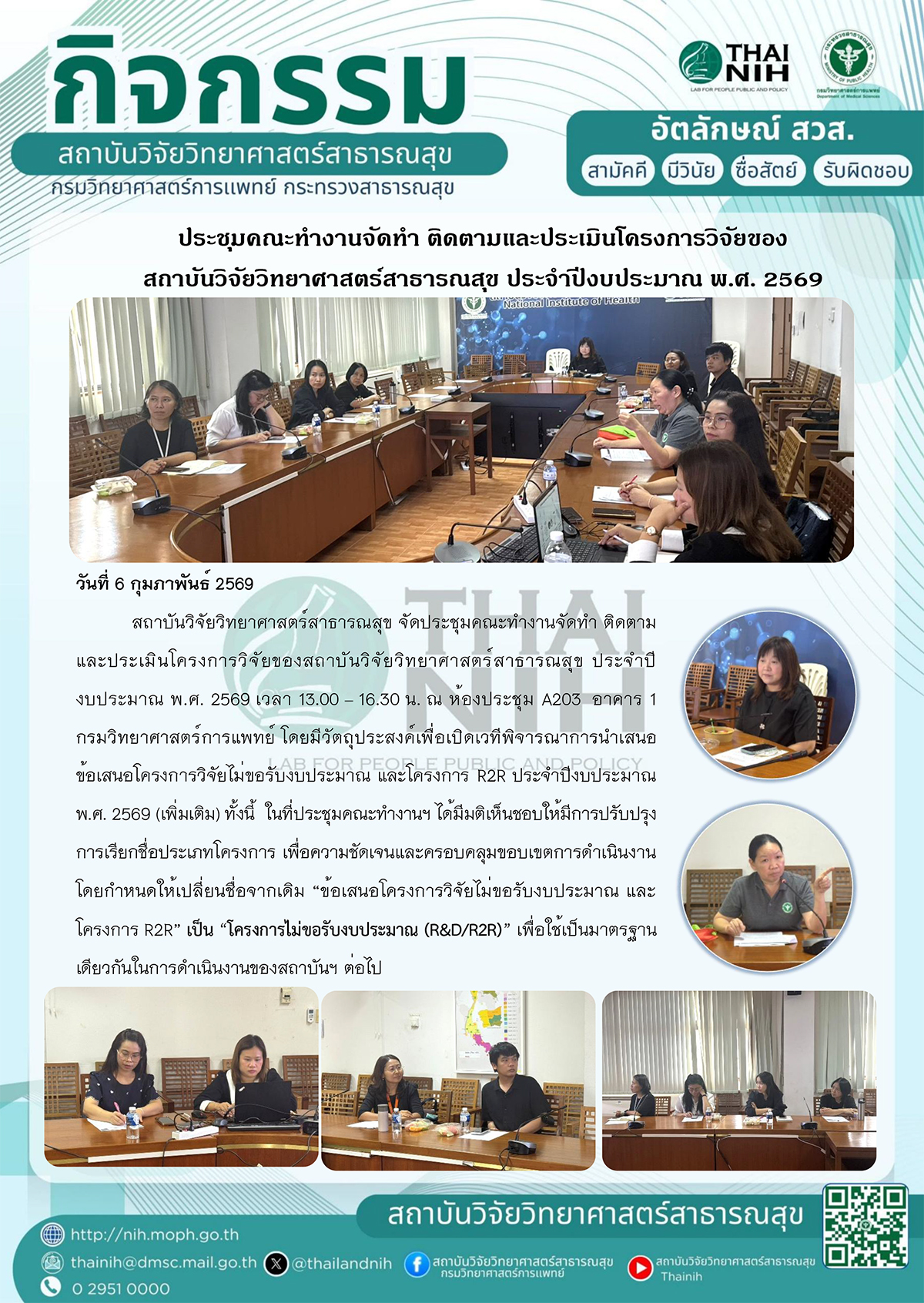 ประชุมคณะทำงานจัดทำ ติดตามและประเมินโครงการวิจัยของ สถาบันวิจัยวิทยาศาสตร์สาธารณสุข ประจำปีงบประมาณ พ.ศ. 2569