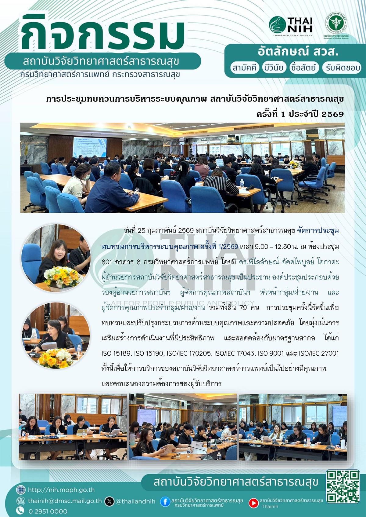 การประชุมทบทวนการบริหารระบบคุณภาพ สถาบันวิจัยวิทยาศาสตร์สาธารณสุข ครั้งที่ 1 ประจำปี 2569