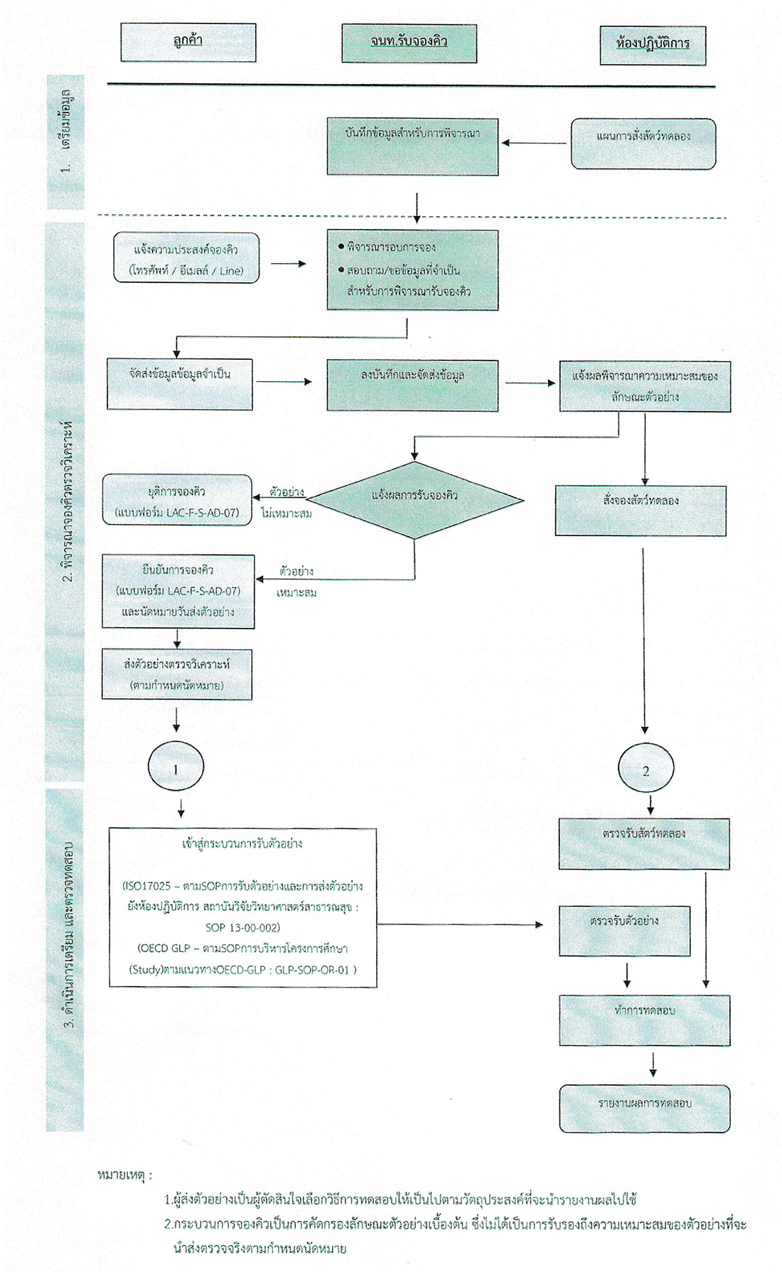ที่มา: การจัดการลูกค้าภายนอกสำหรับการรับตัวอย่างทดสอบ รหัส LAC-PR-S-AD-03 วันที่ออกเอกสาร 16 กุมภาพันธ์ 2567  แก้ไขครั้งที่ 2 หน้า 6 - 7